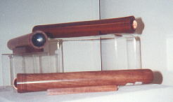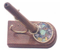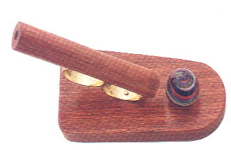 Wood and Brass musical scope with handblown egg shaped dichroic object, that is fixed on a turntable and revolves 8" x 3 1/2" x 8" PRICE: $176 (ARXX) |