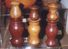 Needlepots Turned and lathed mixed hardwoods for these eighteenth century type needle cases with screw on tops. 6" x 2"