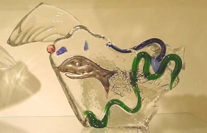 "BUCKS, BABE AND BENZ" Cast glass with copper 7" x 9" x 4" PRICE: $149 |