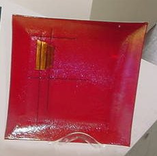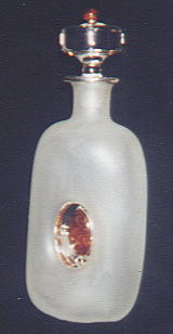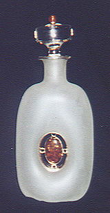 Blown glass with amber inset in middle of decanter and on lid top. 13" x 5.5" x 3" wide ARTIST: Mariusz Drapikowski PRICE: $395 OXXXX