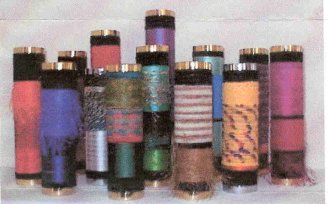 Natural & synthetic fibers adorn 3" tubes with brass end pieces. 2 Mirror, magnified lense, 8 point mandala, dry cell. color themes are winter, spring, summer or Fall ARTIST: Kathleen Hunt PRICE: 11" length - $195 13" length - $210 |