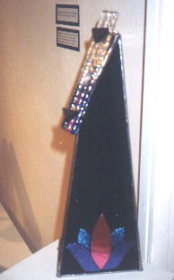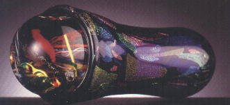 "LA NINA" Stained glass body scope with glass rods, oil filled revolving cell, 3 mirror system 3.5" tall, 8" long, 4" deep ARTIST: Bob/Sue Rioux PRICE: $218 (CXFXX) |